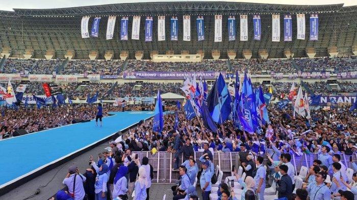 BANDUNG- Calon Presiden (capres) nomor urut 02 Prabowo Subianto menghadiri kampanye akbar yang digelar PAN di Stadion Gelora Bandung Lautan Api (GBLA) Kota Bandung.